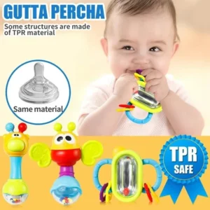 10 hochets avec anneaux de dentition pour le développement de la motricité et du suivi visuel – cadeau de naissance